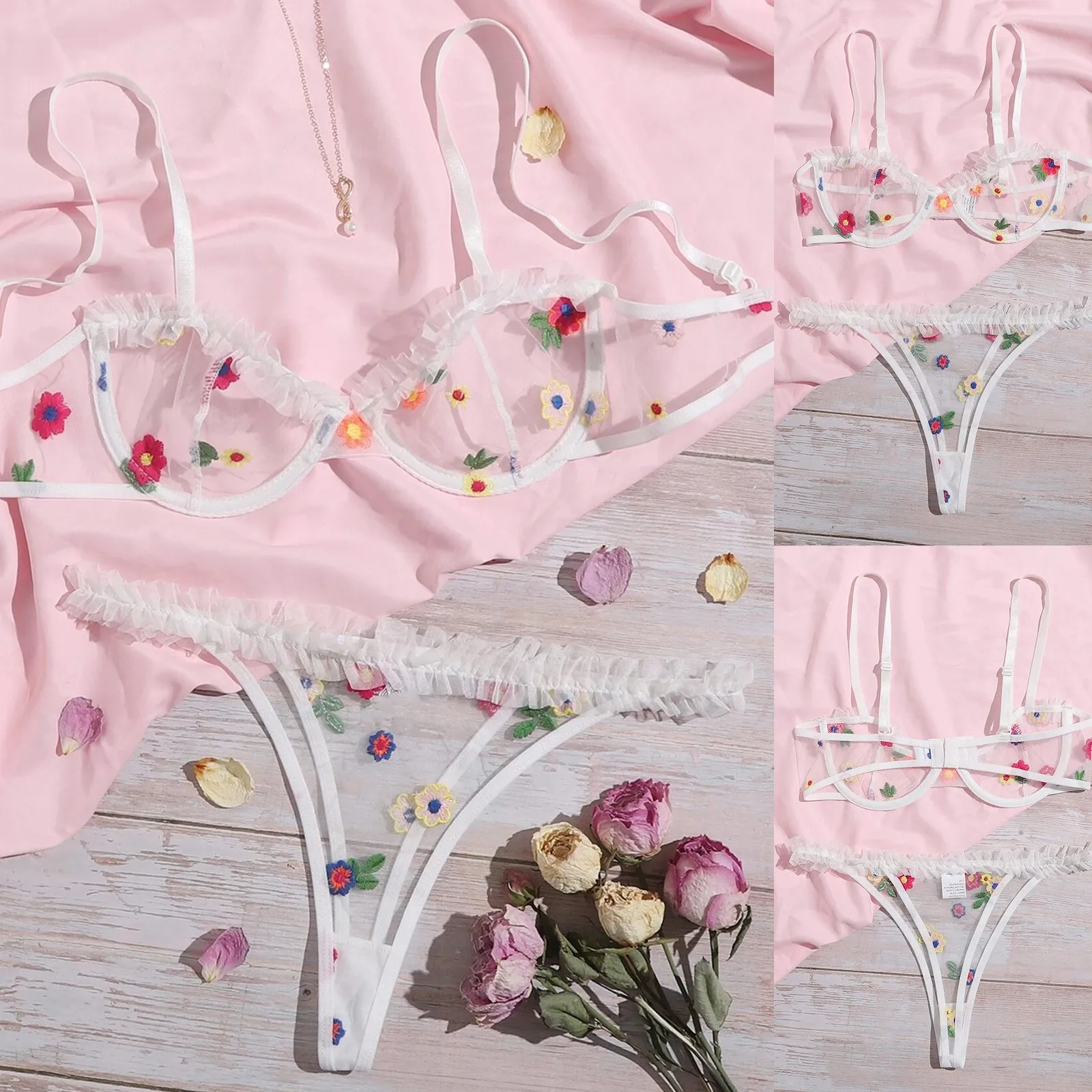 Бюстгальтер с цветочной вышивкой, стринги, пижамы, нижнее белье, женское нижнее белье