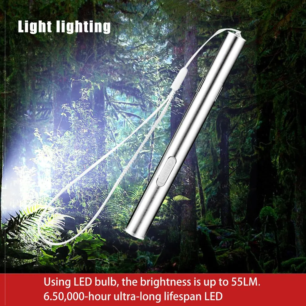 Этот фонарик с модным и красивым внешним видом, супер мини размером, формой ручки, с карманом для удобства переноски.