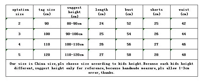 Примечание:1. Поскольку рост детей одного и того же возраста отличается, пожалуйста, выберите размер, соответствующий росту. Рекомендуемый рост указан только для справки.2. Пожалуйста, сравните с таблицей размеров, «Размер оптации»-это только приблизительный возраст, размер бирки-китайский Размер (см).3. Если у вас есть путаница, пожалуйста, свяжитесь с нами.4. Пожалуйста, примите во внимание возможную погрешность в 1-2 см, 1 дюйм = 2,54 см, 1 см = 0,39 дюймов.