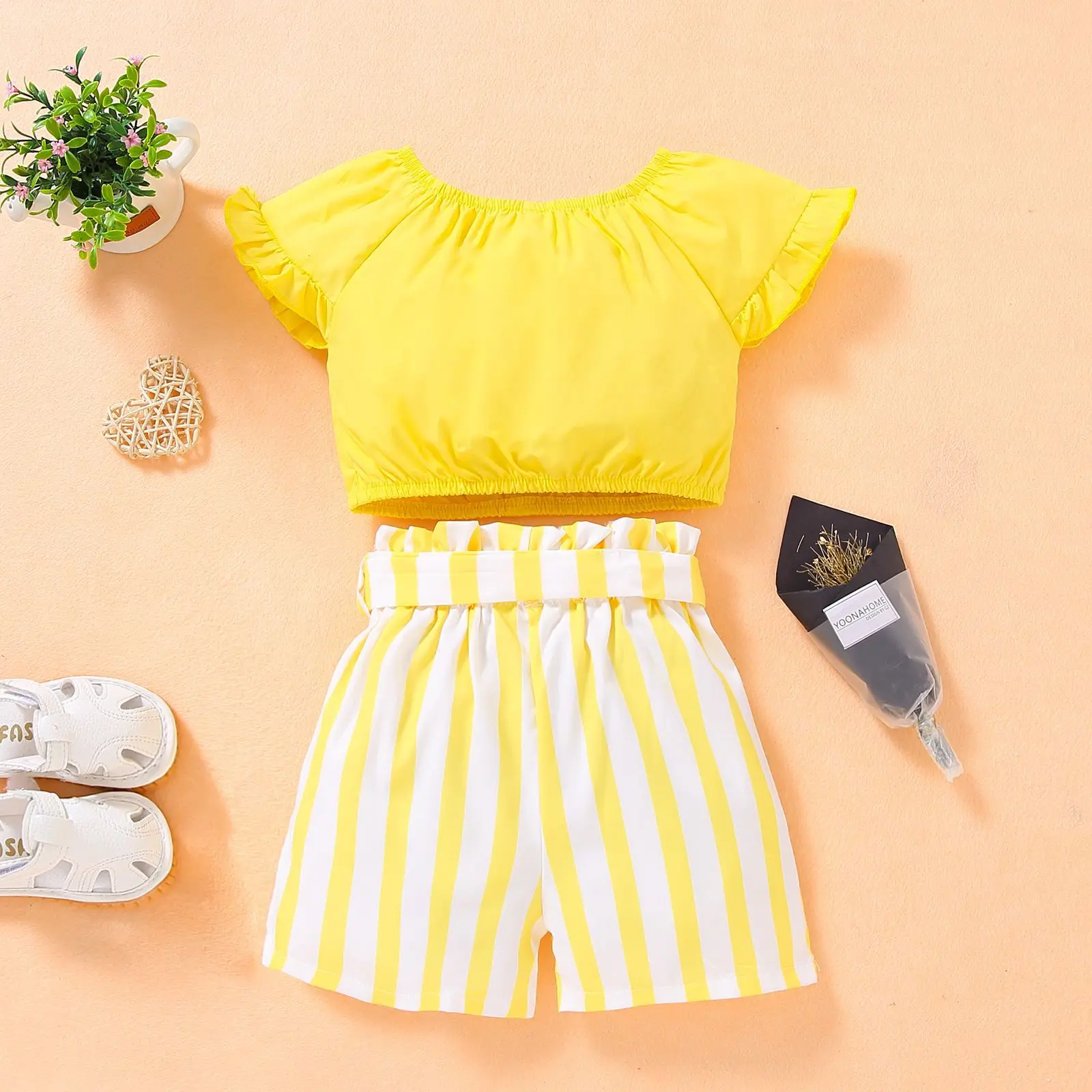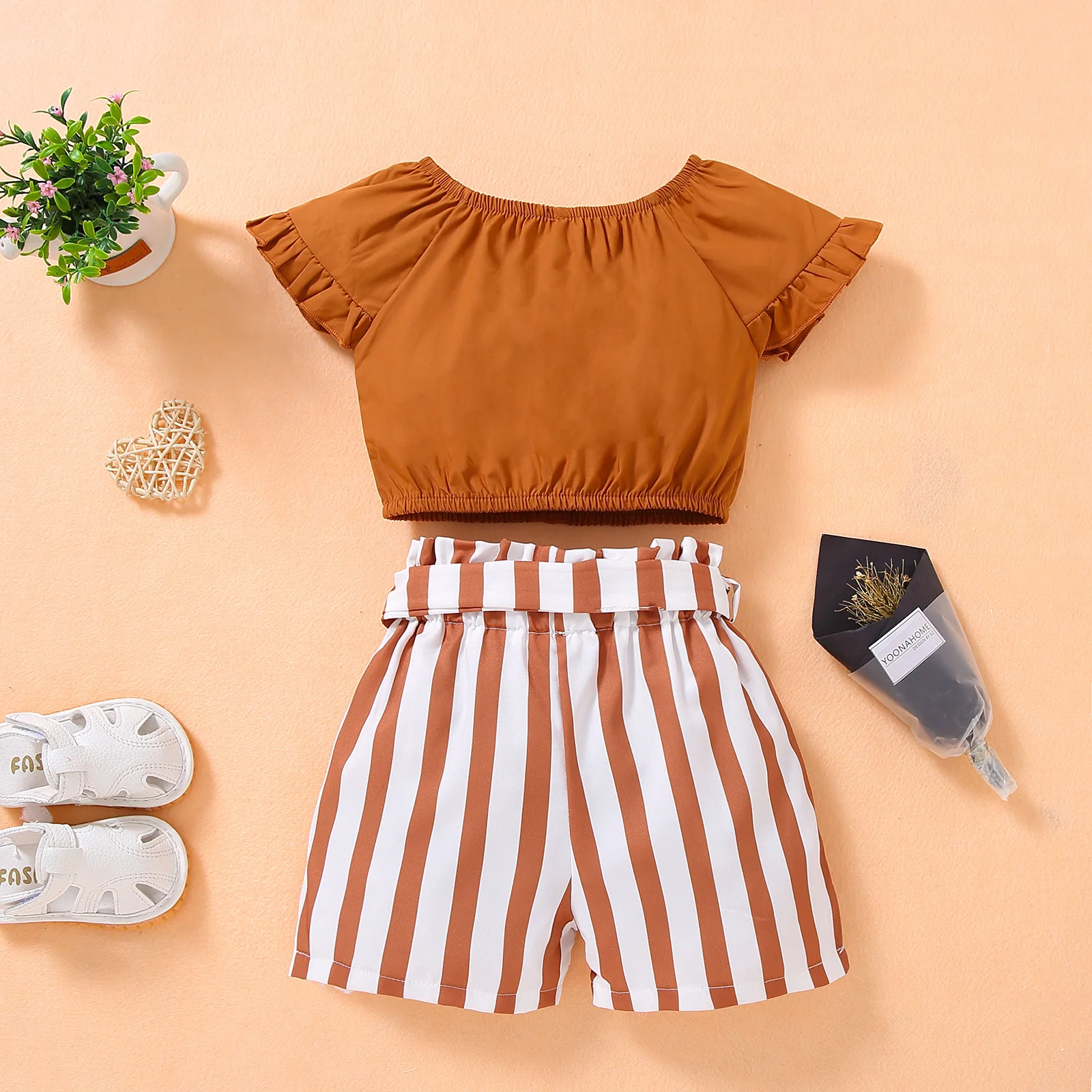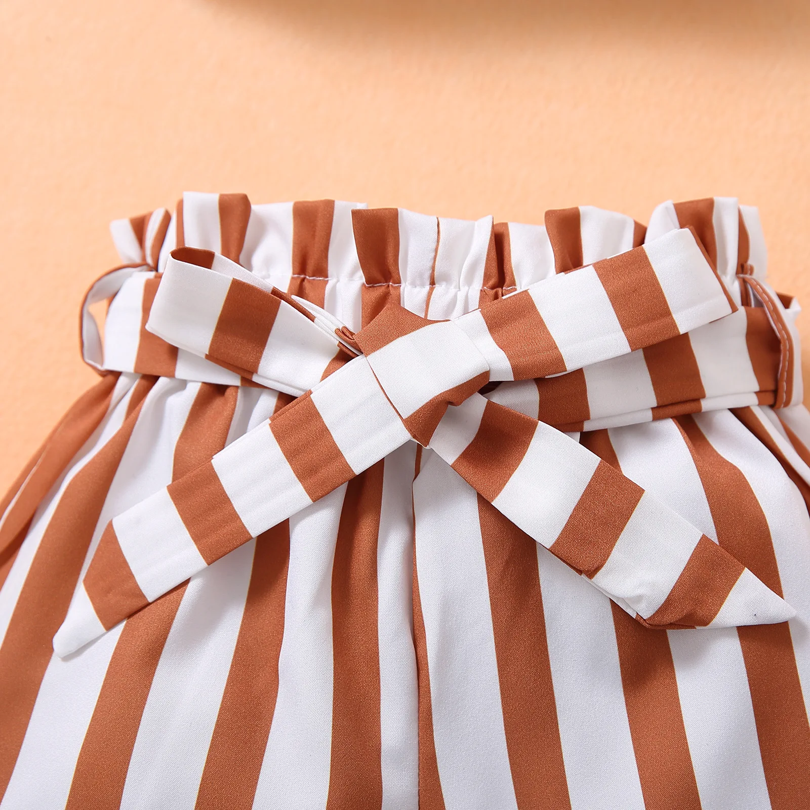 Летний комплект одежды для маленьких девочек, короткий топ на пуговицах + шорты в полоску, комплект из 2 предметов BB124