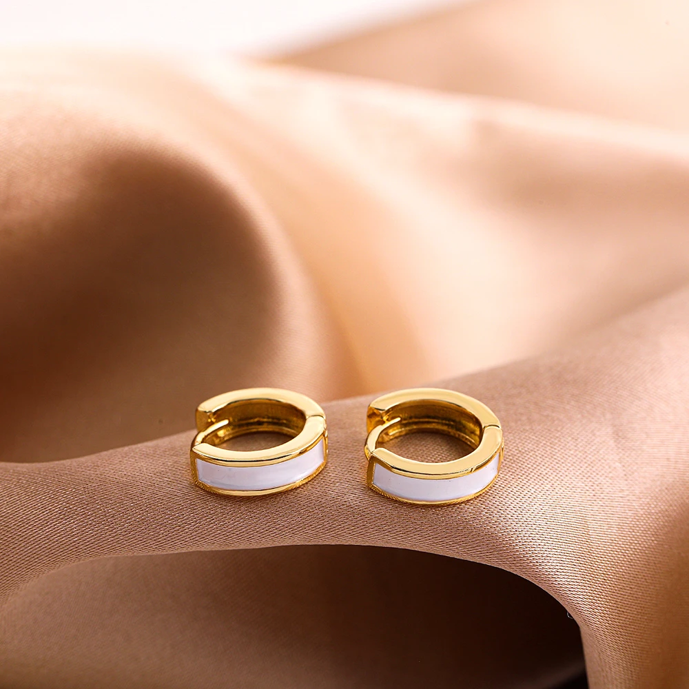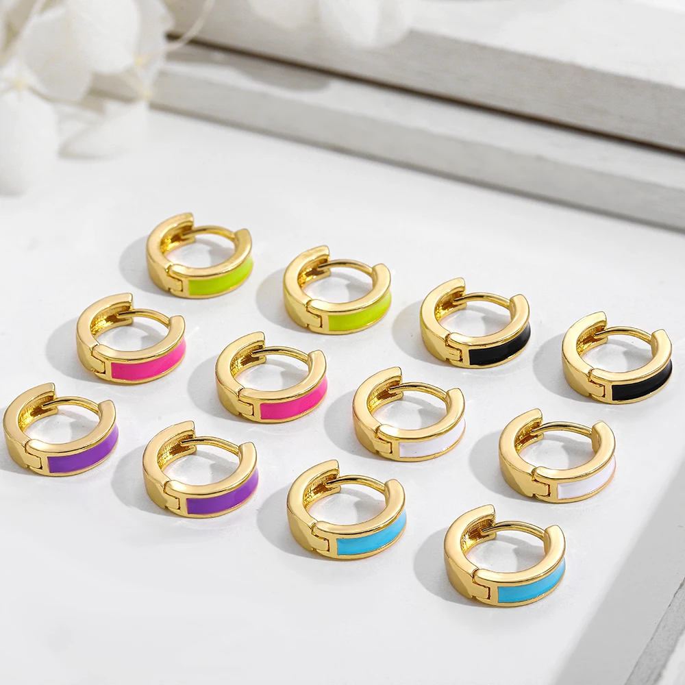 Маленькие серьги-кольца с эмалью женские, модные круглые мини-серьги с геометрическим дизайном, с застежкой для ушей, Подарочная бижутерия