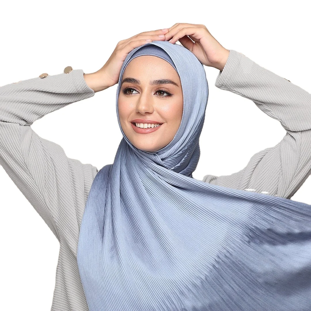 Женские шарфы-шали, длинные Хиджабы, популярные, по индивидуальному заказу, хиджабы со складками, атласные, шелковые, на ощупь