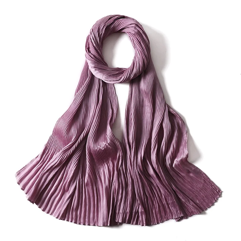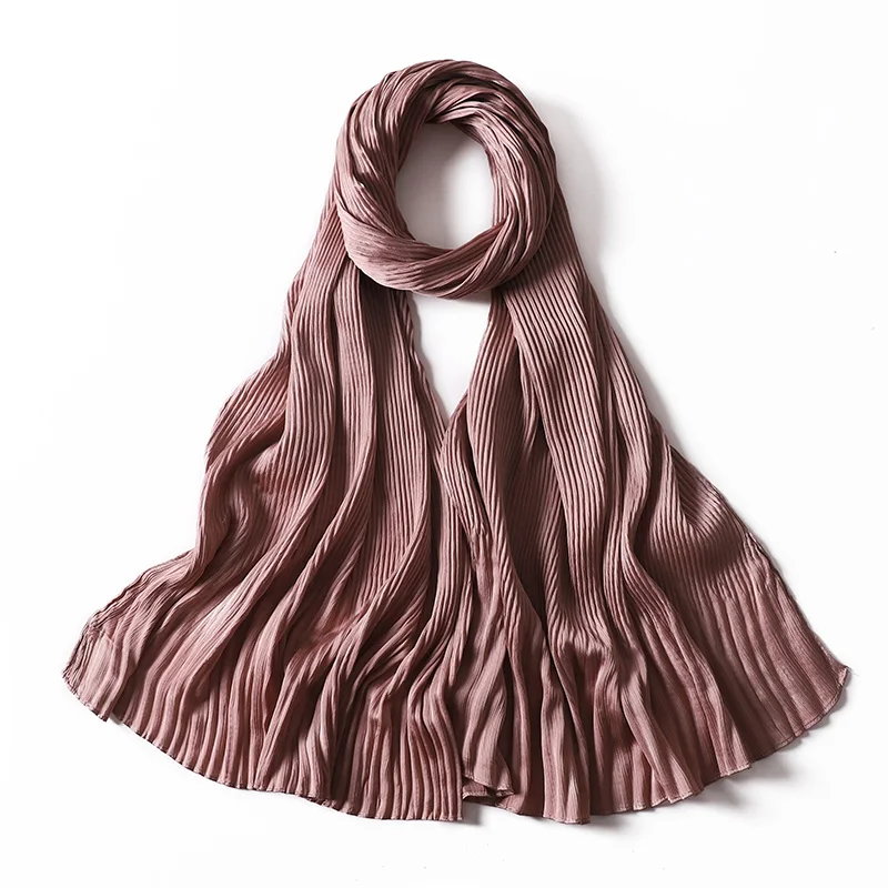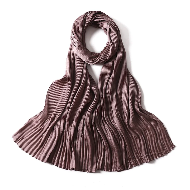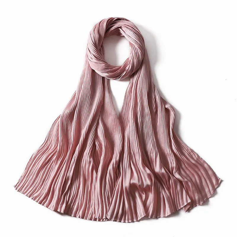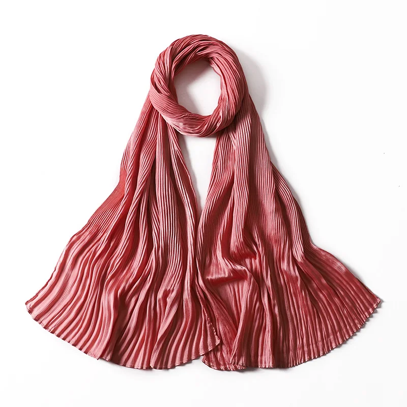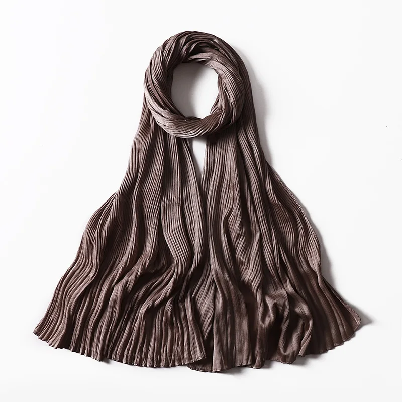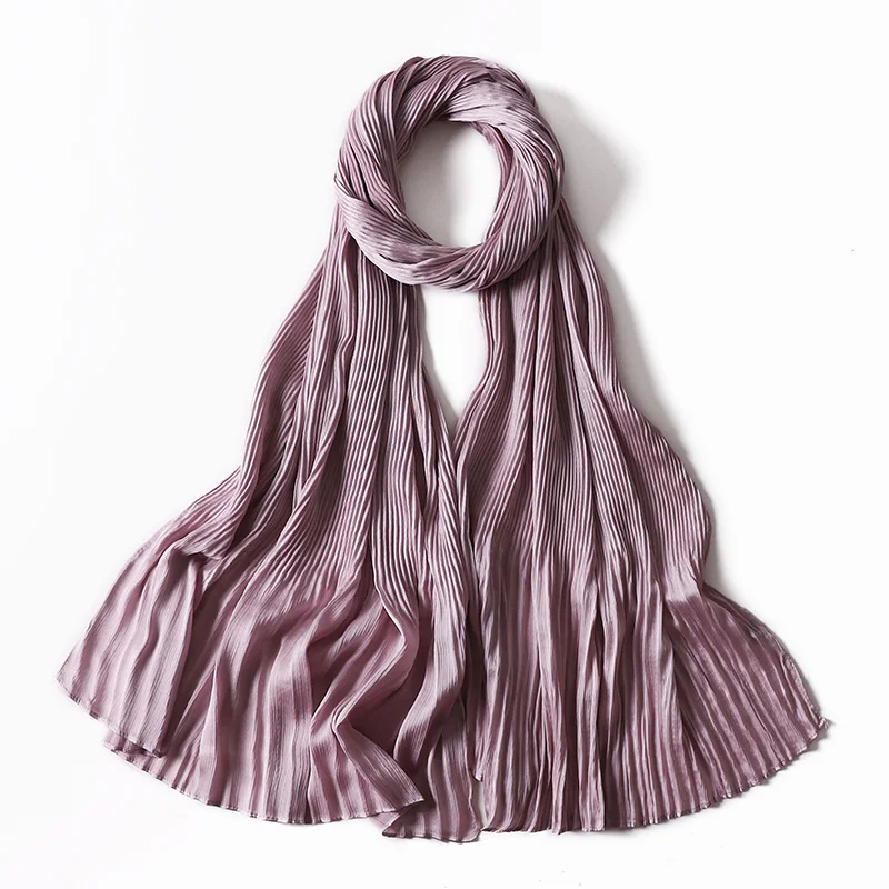 Шелковый однотонный шарф Hijabs для женщин, шарфышарфы, плиссирован...