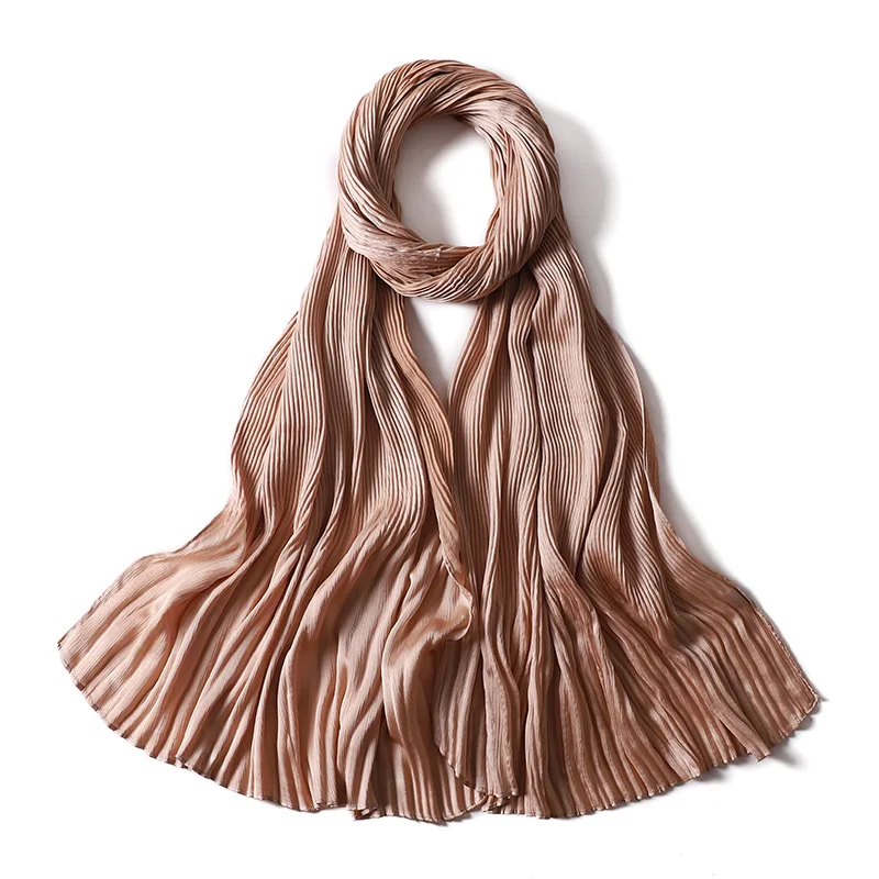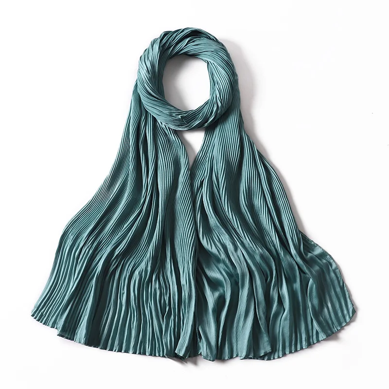 Шелковый женский плиссированный атласный шарф, хиджаб, Осень-зима, ...
