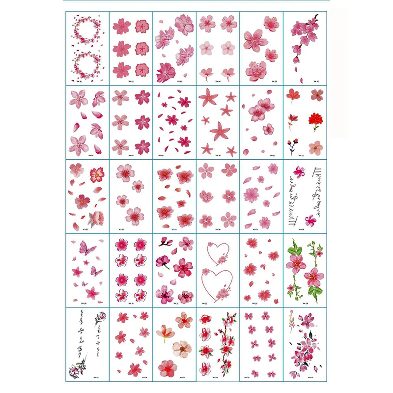 30 листов Розовые цветочки для боди-арта на груди, переводятся с помощью воды Водонепроницаемый Временные татуировки для девочек браслет на талию флэш-тату