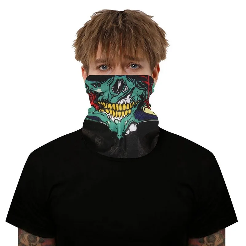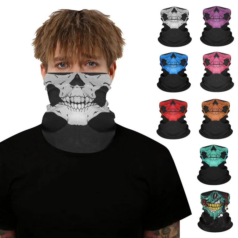 Балаклава с принтом для женщин и мужчин, бесшовный волшебный платок с черепом, маска на половину лица, шейный походный шарф
