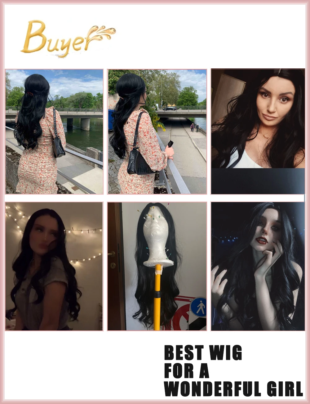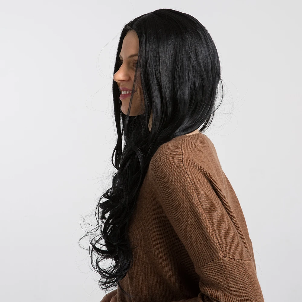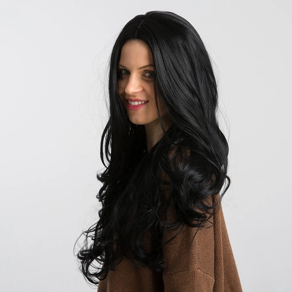 Длинный черный синтетический женский парик LOUIS FERRE, парик для косплея средней части с естественной волной для женщин, термостойкие африканские и американские волосы