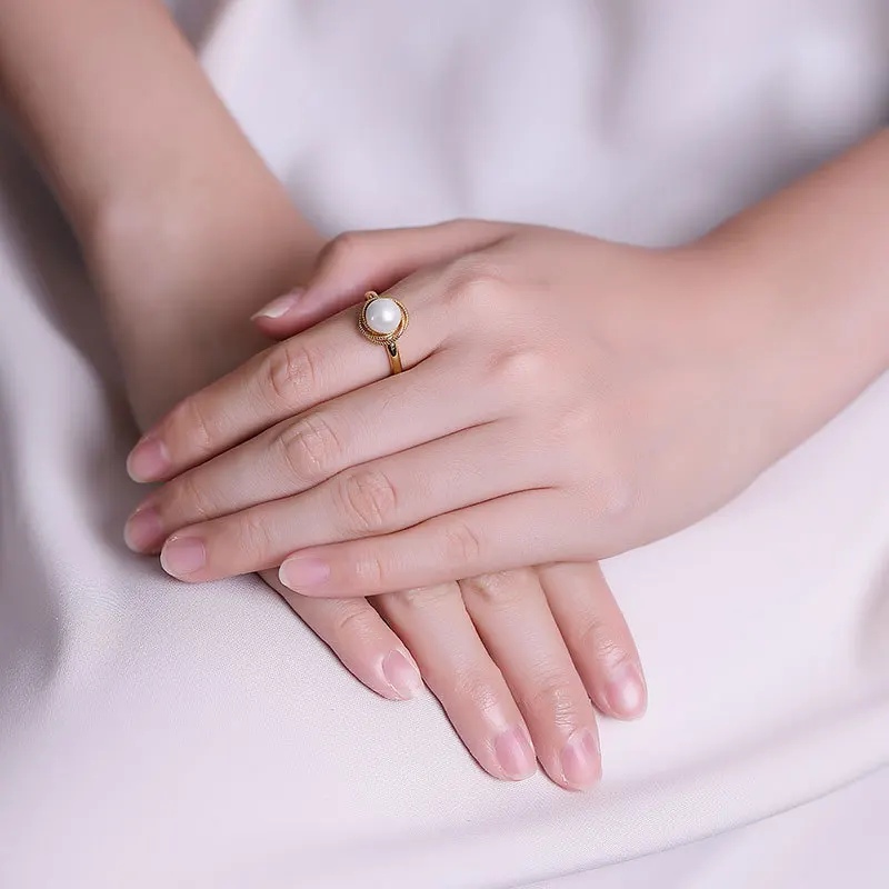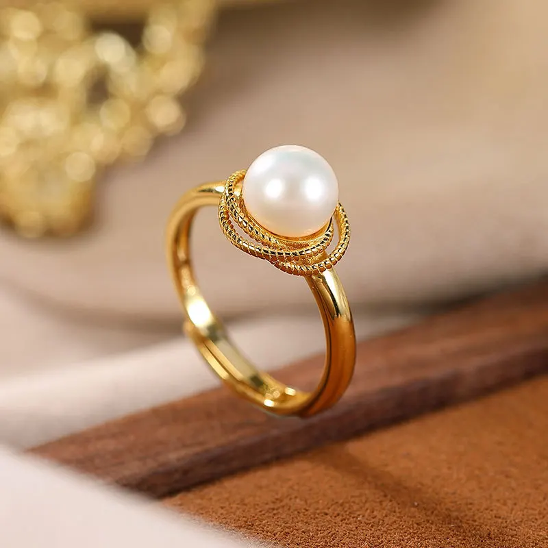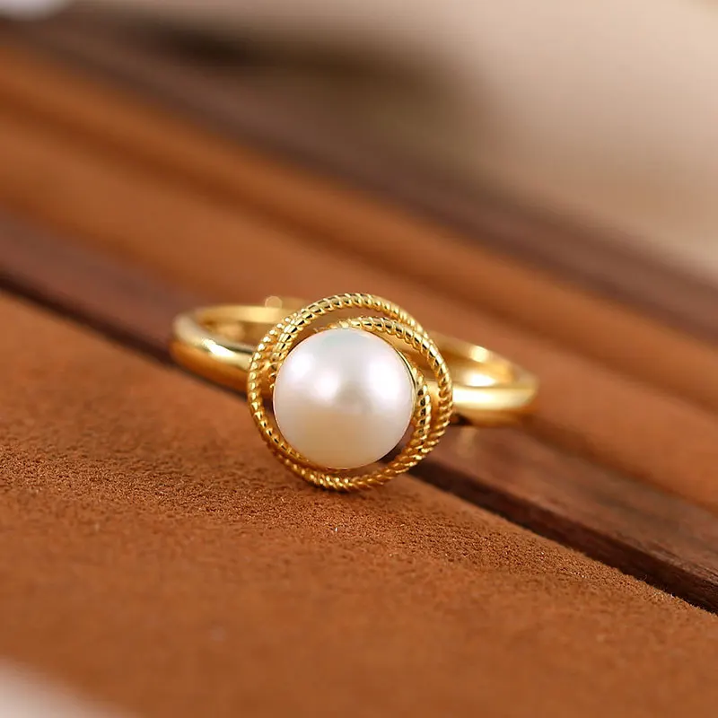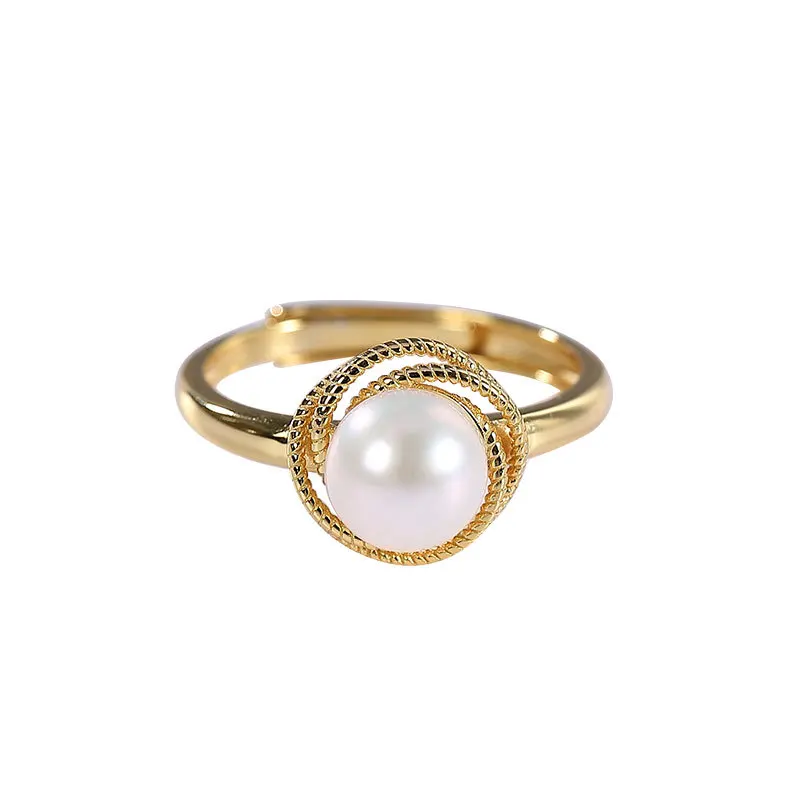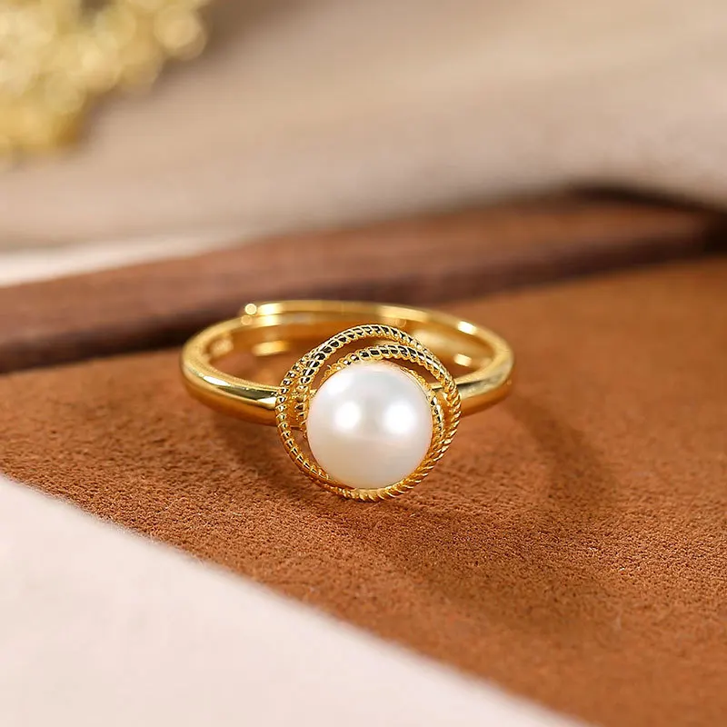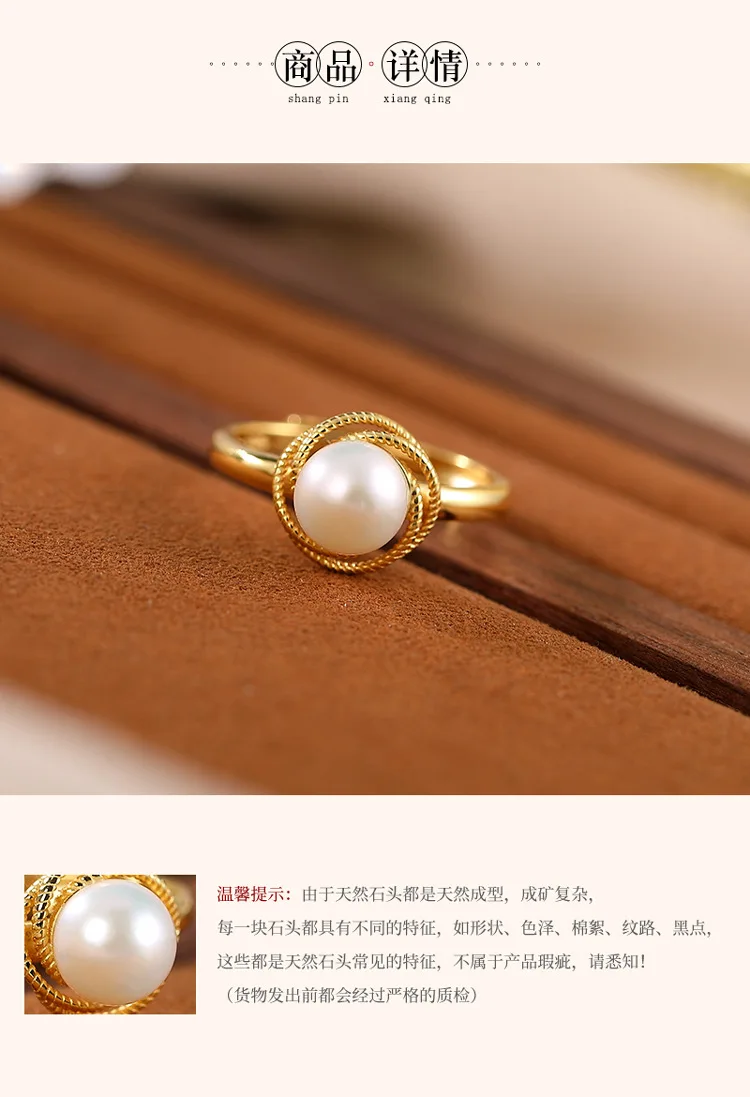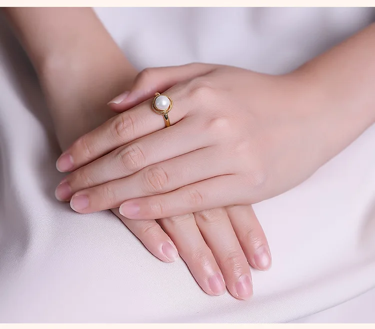 Для женщин, хорошее ювелирное изделие, S925 стерлингового серебра с золотым напылением из натурального жемчуга личность открытая Дамская кольцо Мода в стиле барокко КОЛЬЦО K0044