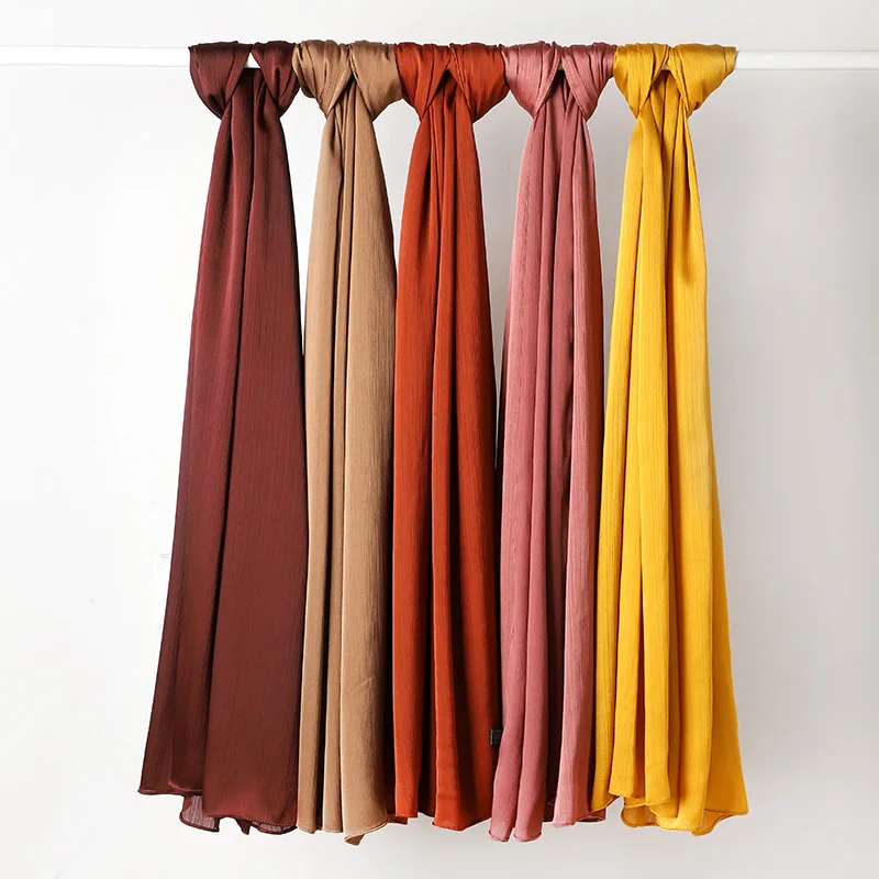 1 шт. сморщенный атласный шелк HIJABS для женщин длинный солидный Цвет Обычный HIJABS 21 цвет