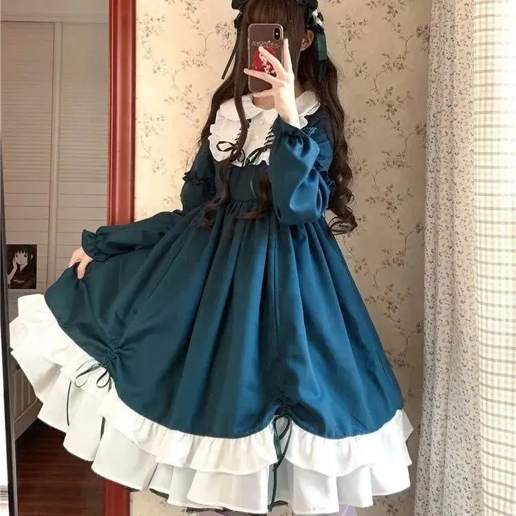 Женское платье в японском стиле, милое платье в стиле Лолиты с воро...