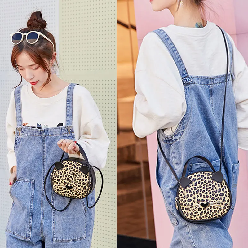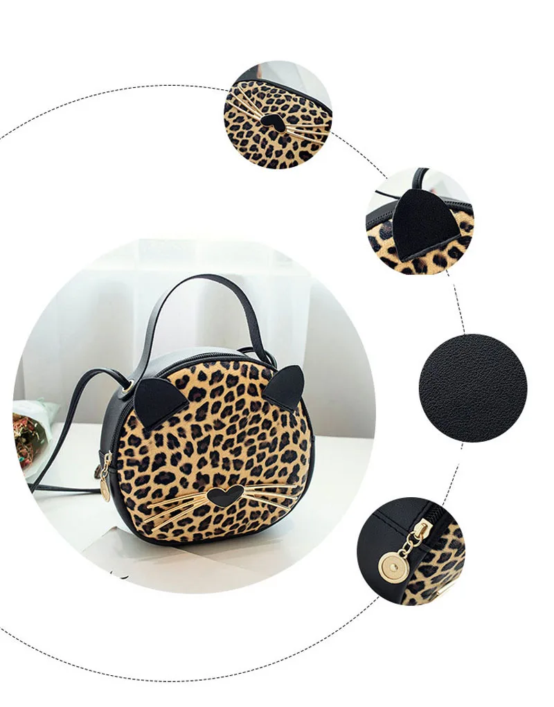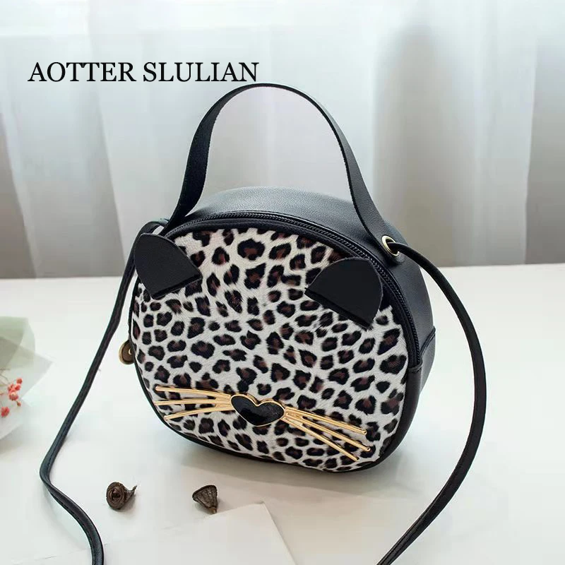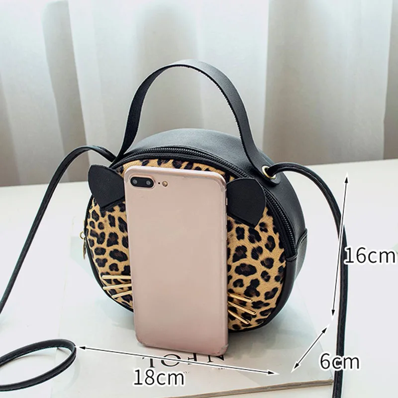 Индивидуальная сумка-клатч для девочек, милая круглая маленькая сумка, трендовый леопардовый дизайн, сумка через плечо, основная Сумочка, женские круглые сумки