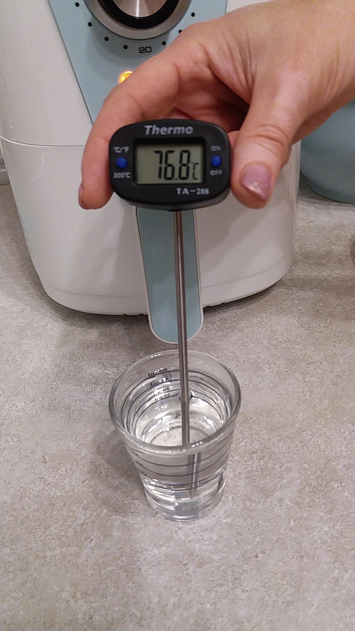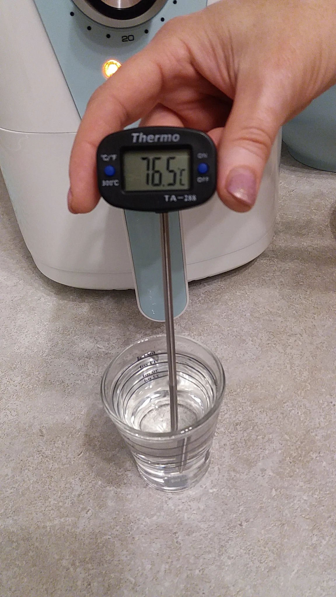 Термометр показывает 76,6 градуса при кипении воды. А что вы хотите за эти деньги? Всё равно, продавцу спасибо.