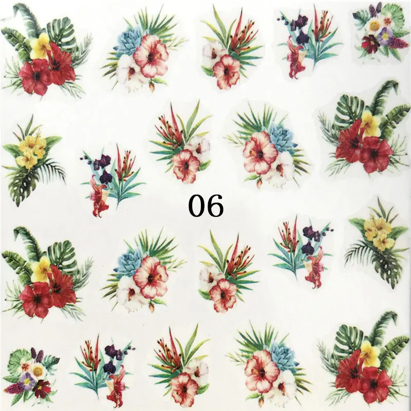 Наклейки для дизайна ногтей с цветами, водные переводные наклейки, ...