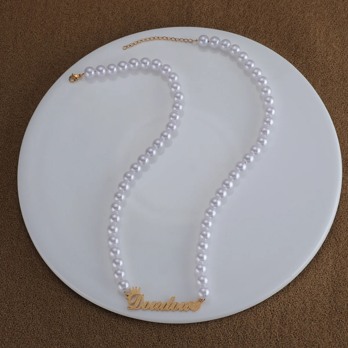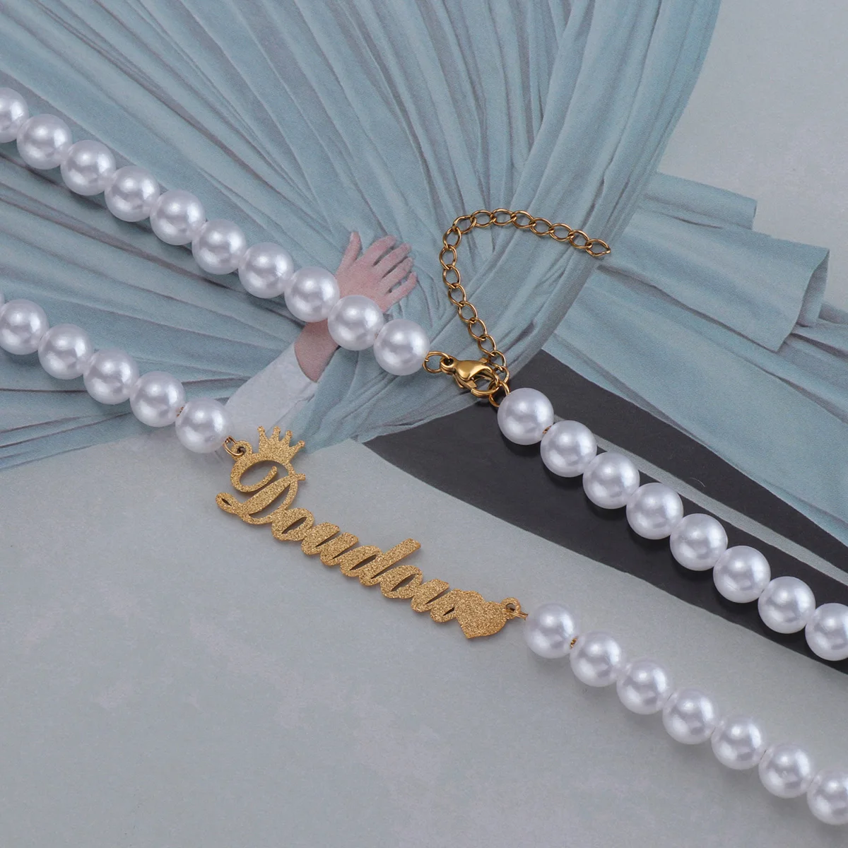 Индивидуальные Имя ожерелья из нержавеющей стали персонализированные Мороз жемчужная цепочка колье с кулоном в элегантные для женщин ювелирные изделия