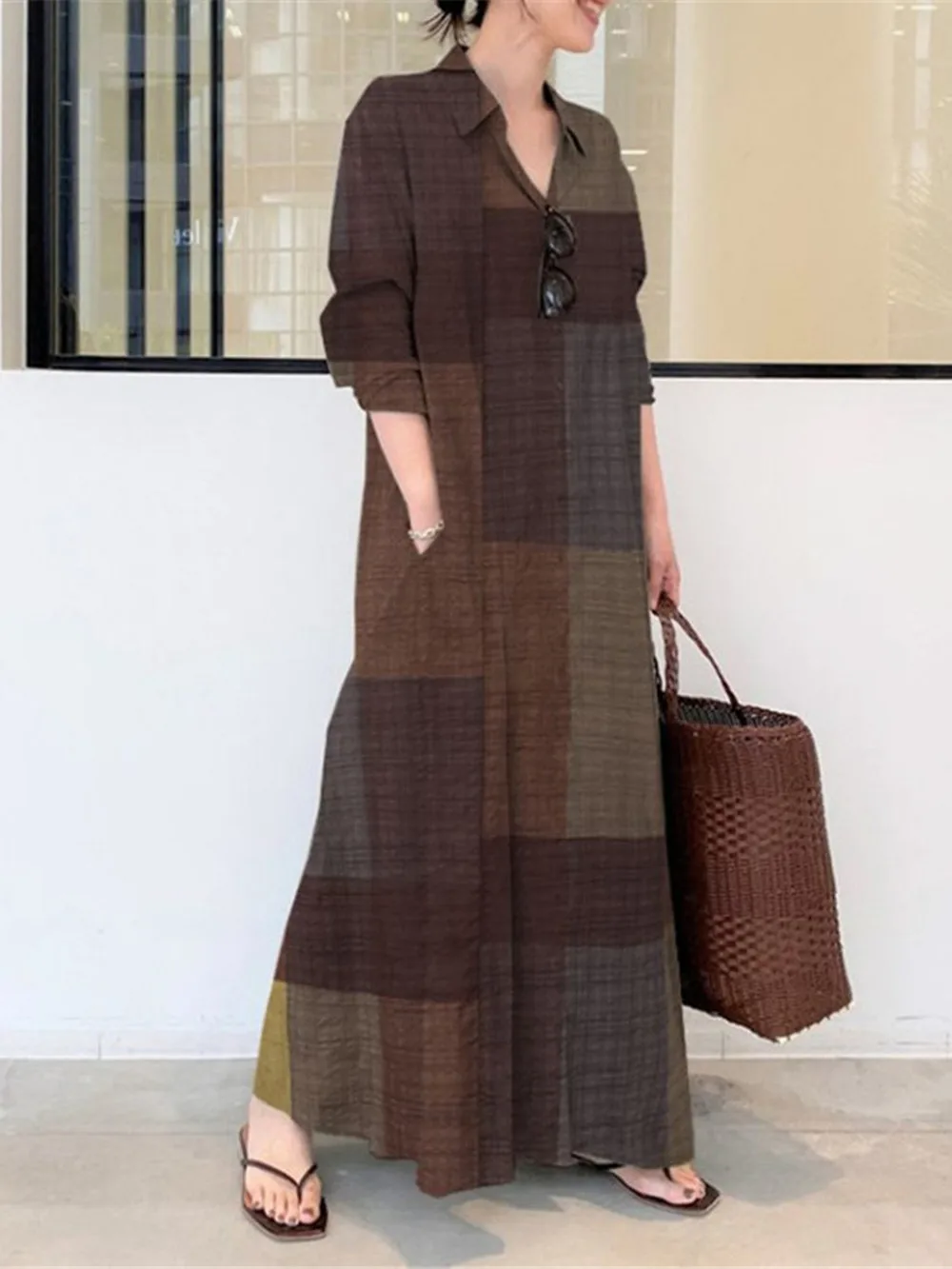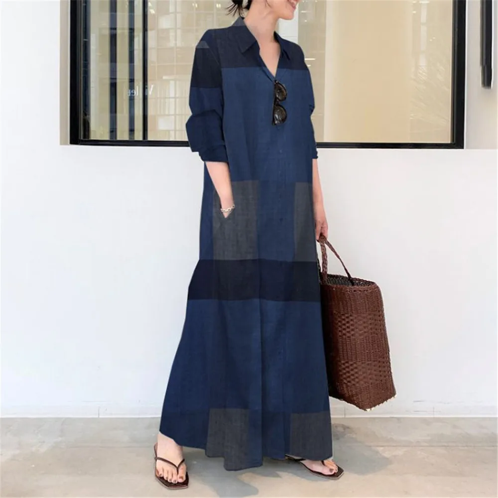 Женское Хлопковое платье-рубашка в клетку, элегантное однотонное офисное свободное платье-рубашка с длинным рукавом, лето 2021