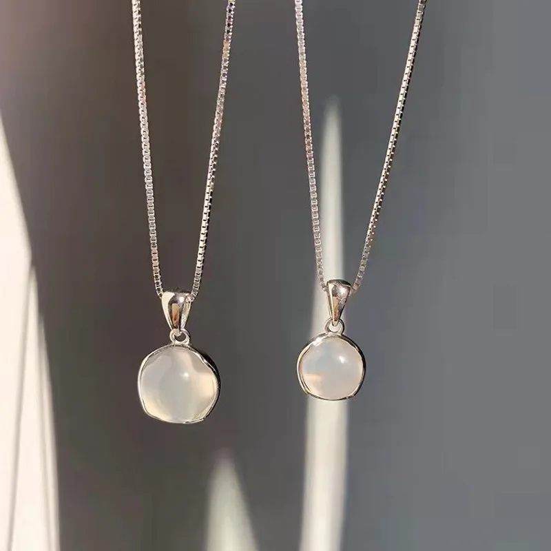 Роскошное посеребренное Белое Круглое ожерелье с кулоном из лунного камня Женская Модная бижутерия чокер цепочка до ключиц короткое Очаровательное ожерелье