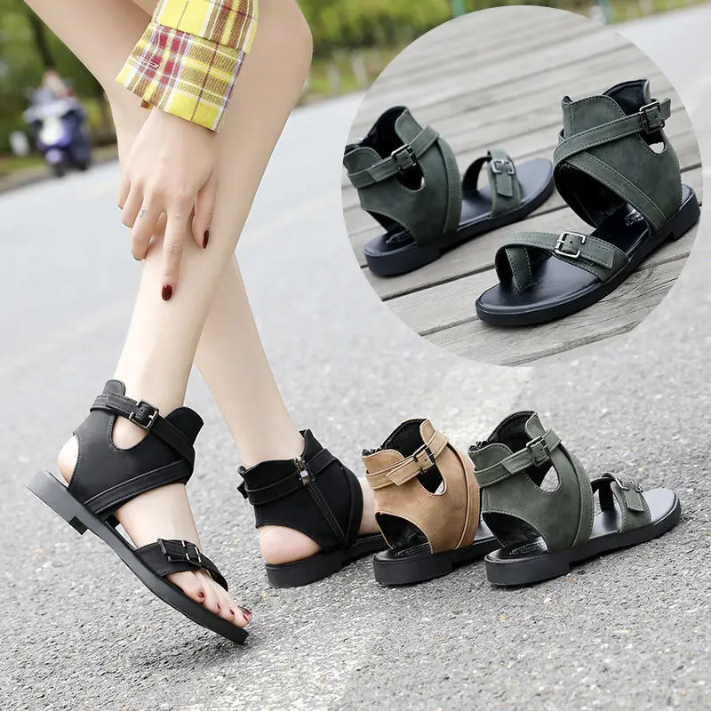 Сандалии женские на низком каблуке, римские босоножки с высоким верхом, удобные туфли-трубки с ремешком и пряжкой, комплект в стиле ретро, лето