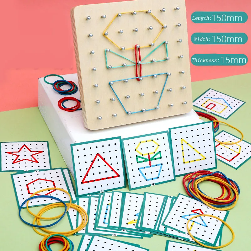 Детские креативные игрушки Монтессори, графические Резиновые Доски для ногтей с карточками, детское образование, игрушки для дошкольников и детей, Обучающие