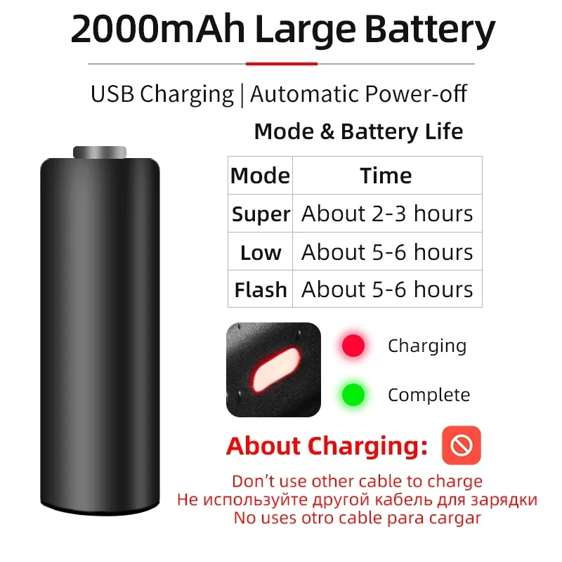 Режим: 3 режима (супер яркий/низкий/вспышка)