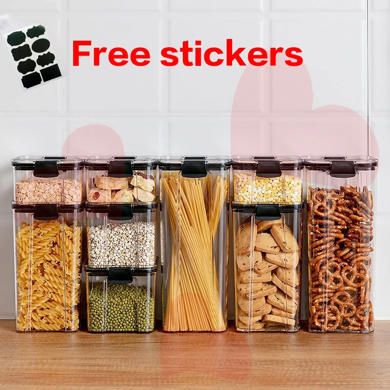 Прозрачная коробка для макаронных изделий с крышкой в кладовой, многозернистые Герметичные банки, контейнер для хранения продуктов, пластиковые банки для кухонного холодильника, хлопьев