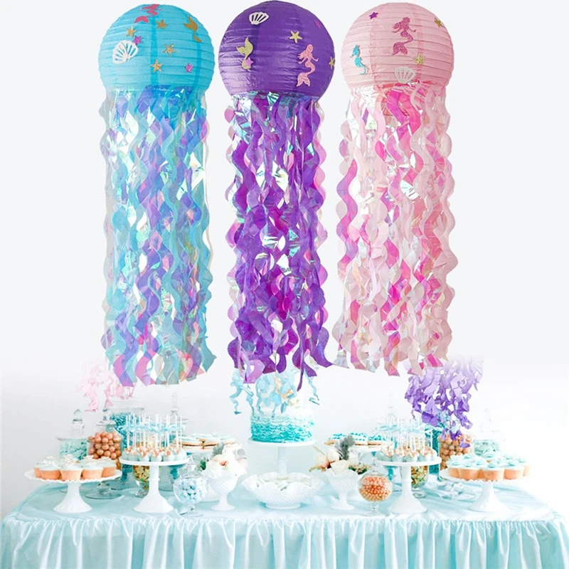Русалка, подвесная самодельная Медуза, бумажный фонарь, фонарь, Русалка, тематический Декор для вечеринки, украшения для дня рождения, вечеринки, детского праздника