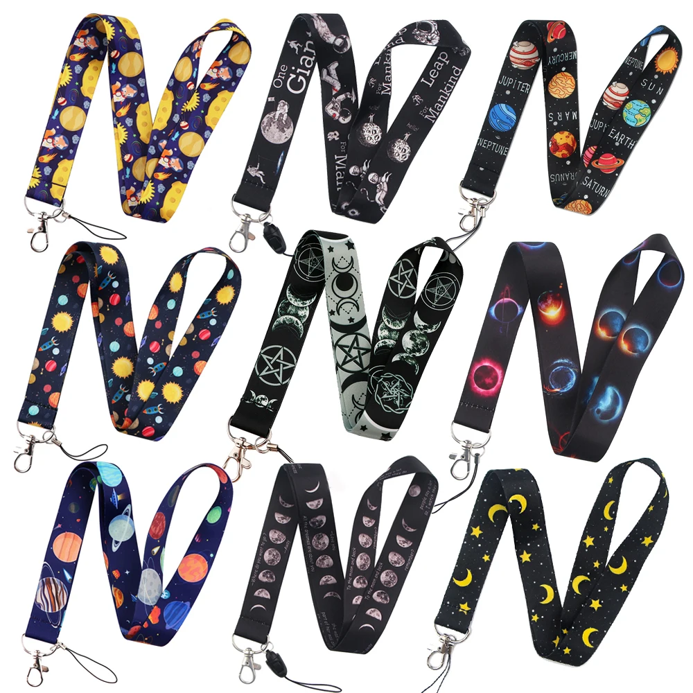 Ремешок на шею YL505 в виде планеты и Луны для ключей, брелок для ID-Карты, USB-держатель для телефона, подвесной шнурок сделай сам
