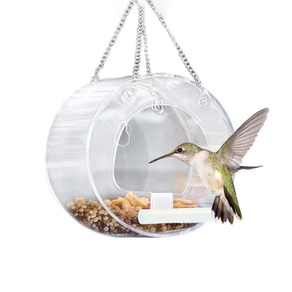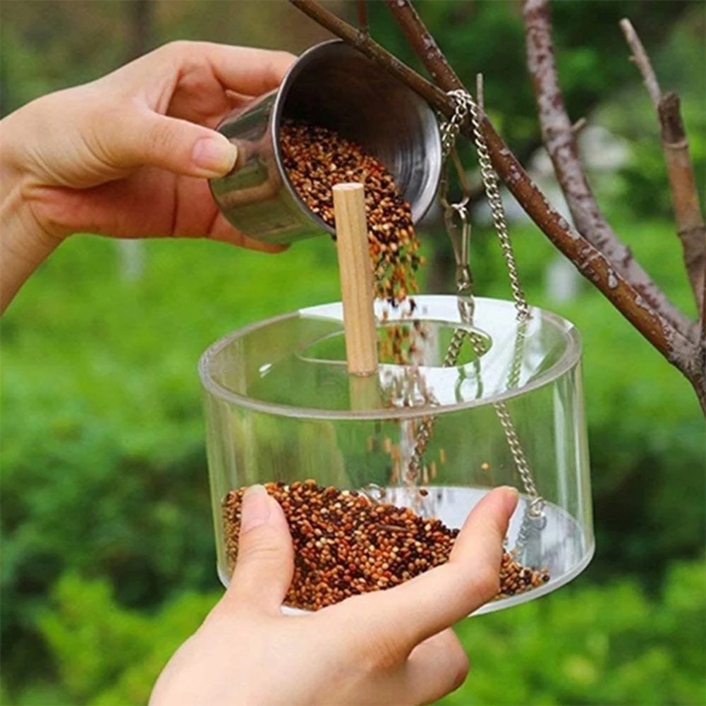 Прозрачная акриловая кормушка для птиц, уличная подвесная кормушка ...