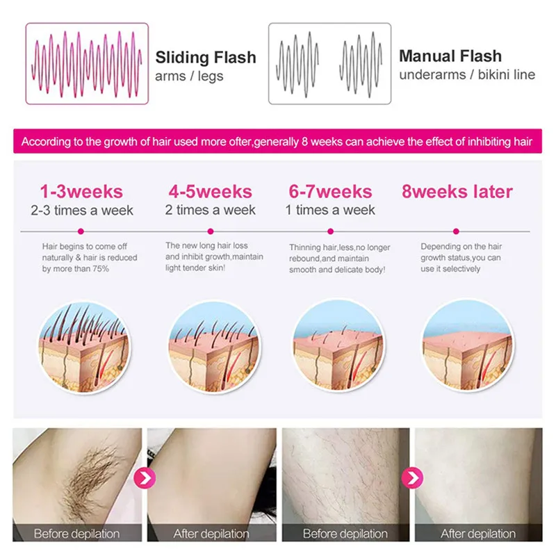 Посылка включает в себя:1 x IPL устройство для удаления волос1 x очкиСкребок-1 шт.1 х адаптер питания1 x Руководство пользователяОсобенности:Постоянное и безболезненное удаление волос: это обновление IPL удаление волос может помочь вам достичь постоянного удаления волос и гладкой кожи через разрыв цикла роста волос, это очень мягко, особенно для первых пользователей или для лечения любых областей, таких как лицо или Линия бикини.Нет необходимости в удалении: это устройство для удаления волос IPL с 999999 вспышками, является пиковым значением когда-либо. Вам никогда не нужно будет покупать сменный картридж для вашего устройства для удаления волос. Это эффективный и постоянный светильник для удаления волос и пожизненная покупка.Пять уровней интенсивности регулируемый светильник может широко соответствовать различным типам кожи, может использоваться для удаления волосков ног, рук, подмышек, области бикини, груди, спины, подбородка и так далее.Экономичное домашнее решение: он адаптировал технологию для безопасного использования в комфорте вашего собственного дома. По сравнению с затратами на методы удаления волос в салоне, дома, вы можете получить эффект удаления волос как салон красоты и потратить меньше денег.Характеристики:Срок службы лампы: 999999 импульсовМатериалы: Высококачественная кварцевая лампа + Корпус из АБС-пластикаМощность: 36 ВтДлина волны: 550-1200нмЭнергия: 1,8-4.9J/см? (МА)Площадь облучения: 3,5 см?Уровень светильник: 5 уровней светильник энергииДисплей: светодиодный дисплейПринцип прибора: IPL Photon Beauty TechnologyРазмер: app.18x6.8x4.8CMЦвет: зеленый, белый, розовый (по желанию)Стиль вилки: ЕС, США (опционально)