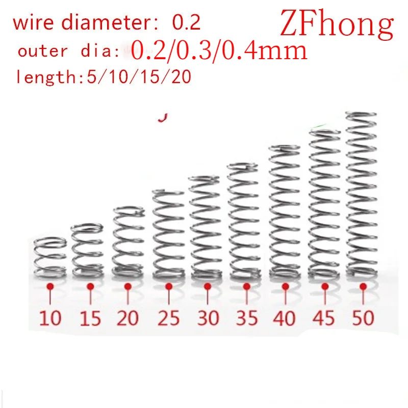 20 шт./лот 0,2 мм нержавеющая сталь Пружина сжатия