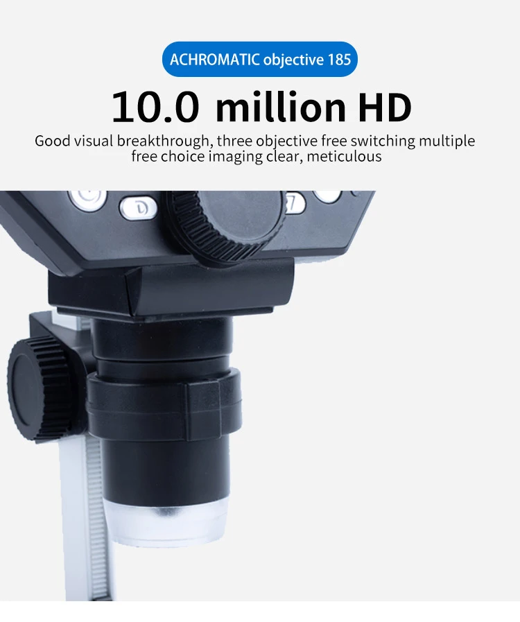 2,5-дюймовый HD ЖК-экран микроскоп, кронштейн можно поворачивать в соответствии с вашими потребностями (металлическое основание не вращается), в то время как объектив поддерживает непрерывное увеличение в 1-4,3 раз. Это определенно станет прекрасным помощником для вашей повседневной работы. Характеристики: Материал кронштейна: Алюминиевый пластик, металл (на выбор) Пиксели: 10 миллионов пикселей высокого разрешения Экран дисплея: 2,8-дюймовый ЖК-дисплей высокой четкости Увеличение: система непрерывного усиления в 1-1000 раз Разъем для флеш-карты MicroSD, поддержка 1-64 Гб (класс 10). (карта в комплект не входит.) Расстояние до объекта: от 10 мм до бесконечности (различные расстояния объектов соответствуют разным кратным.) Этот продукт был улучшен Благодаря проблеме высокого отражения, это цифровой микроскоп, который может регулировать угол наклона. (Только пластиковое основание, металлическое основание не вращается ангелом) Эта машина оснащена 8 яркими светодиодными лампами. Язык: английский, испанский, русский, корейский, японский, тайский, иврит, Португалия, немецкий, французский, Италия, Турция, чешский, Польша, традиционный китайский, упрощенный китайский Упаковочный лист: 1 Микроскоп G1000 Пожалуйста, выберите нужную вам базу самостоятельно.