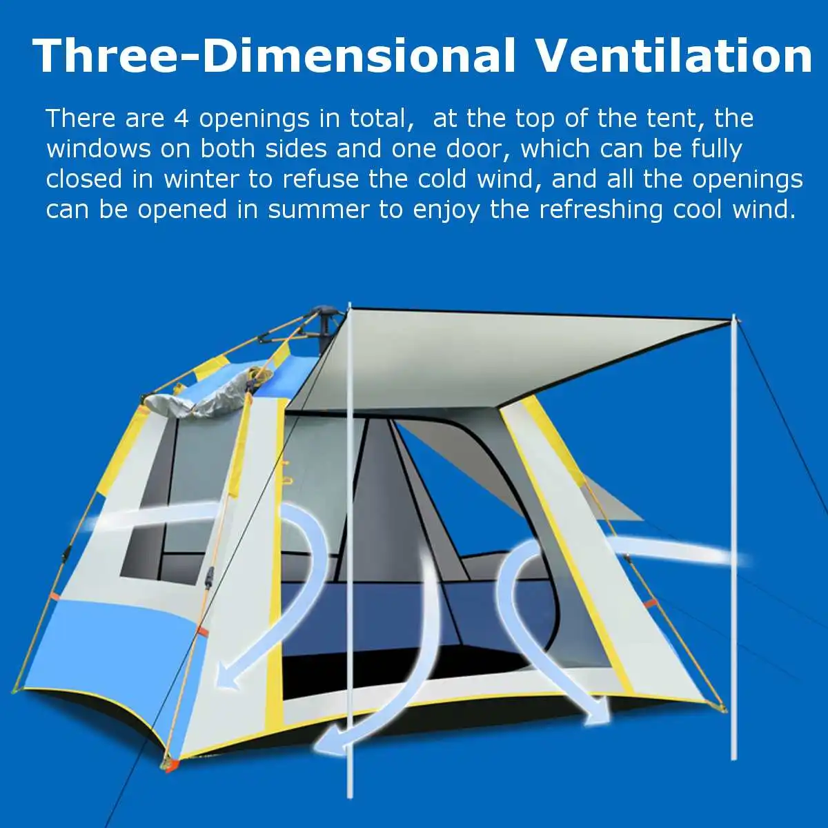 Для полного открытия требуется всего 1 секунда, что полностью исключает тяжелый труд. Установка традиционной ручной палатки для кемпинга может быть выполнена быстро даже для детей.