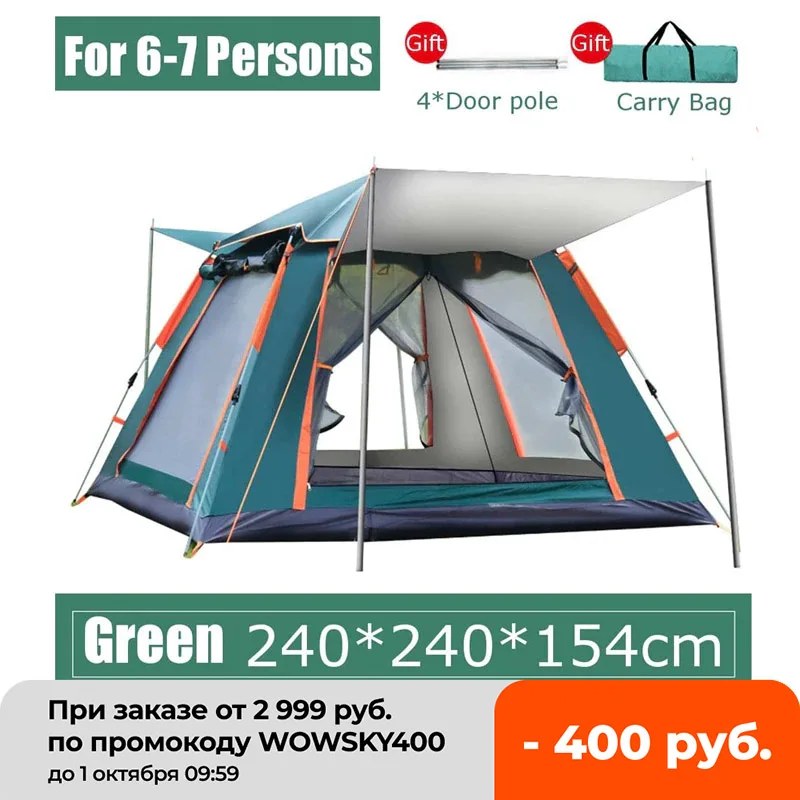 Бесплатная сборка3-4 /5-6/6-7Полностью автоматическая всплывающая палатка для семейного пикника, путешествия, непромокаемый, ветрозащитный