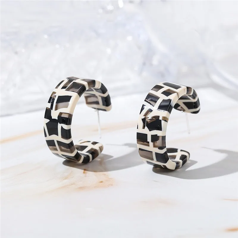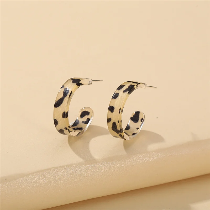 В винтажном стиле с леопардовым принтом акриловые серьги-кольца для женщин, Корея INS геометрический C формы Смола серьги 2021 модные ювелирные изделия