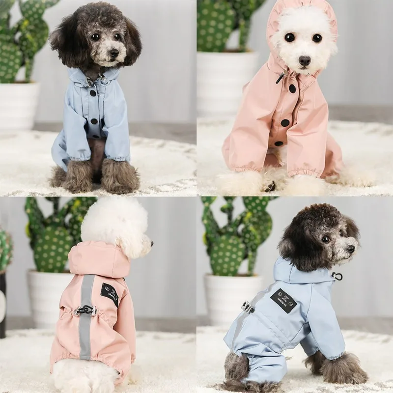 Светоотражающий дождевик для собак, одежда с капюшоном, водонепроницаемый комбинезон, модная дышащая одежда для маленьких и средних собак
