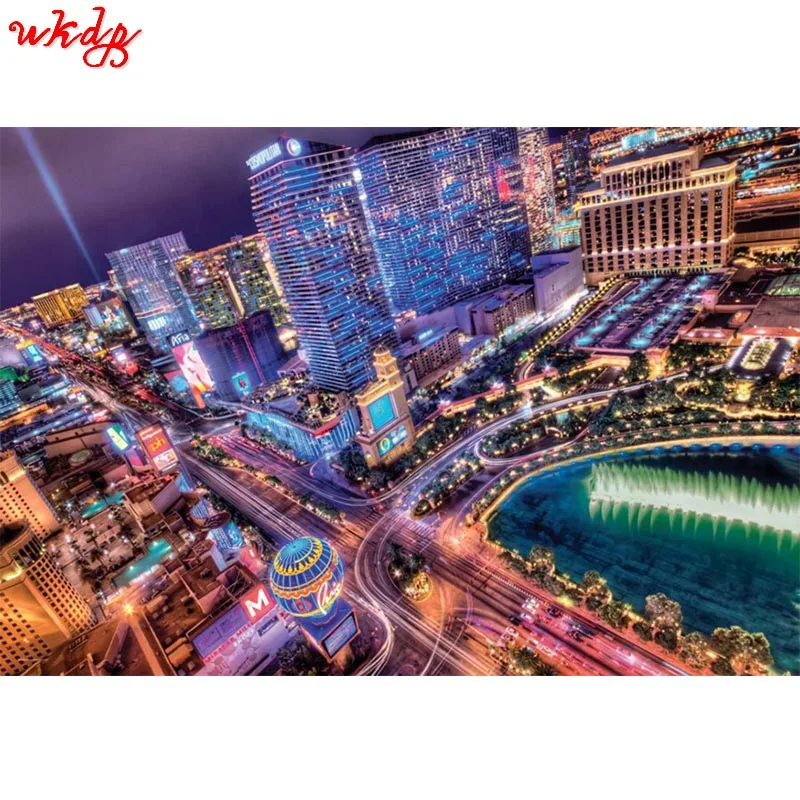 5d алмазная живопись сделай сам, Ночной пейзаж Лас Вегаса, вышивка крестиком, квадратная мозаика, вышивка, холст, настенное искусство, Декор