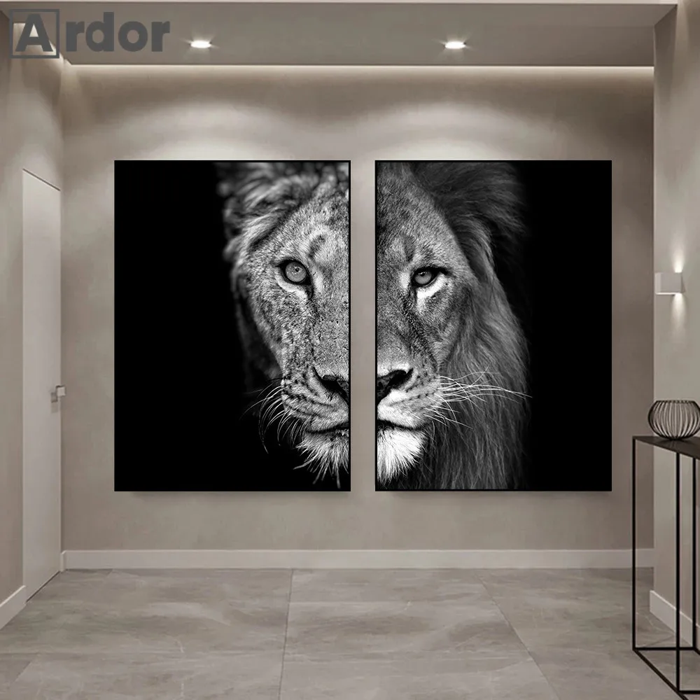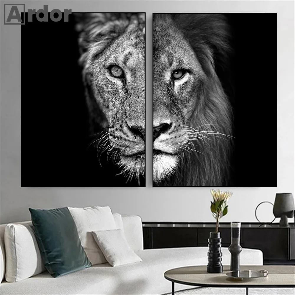 Черно-белые плакаты с изображением диких животных, холст с принтом льва и львины, настенная живопись, декоративная картина в скандинавском стиле, домашний декор