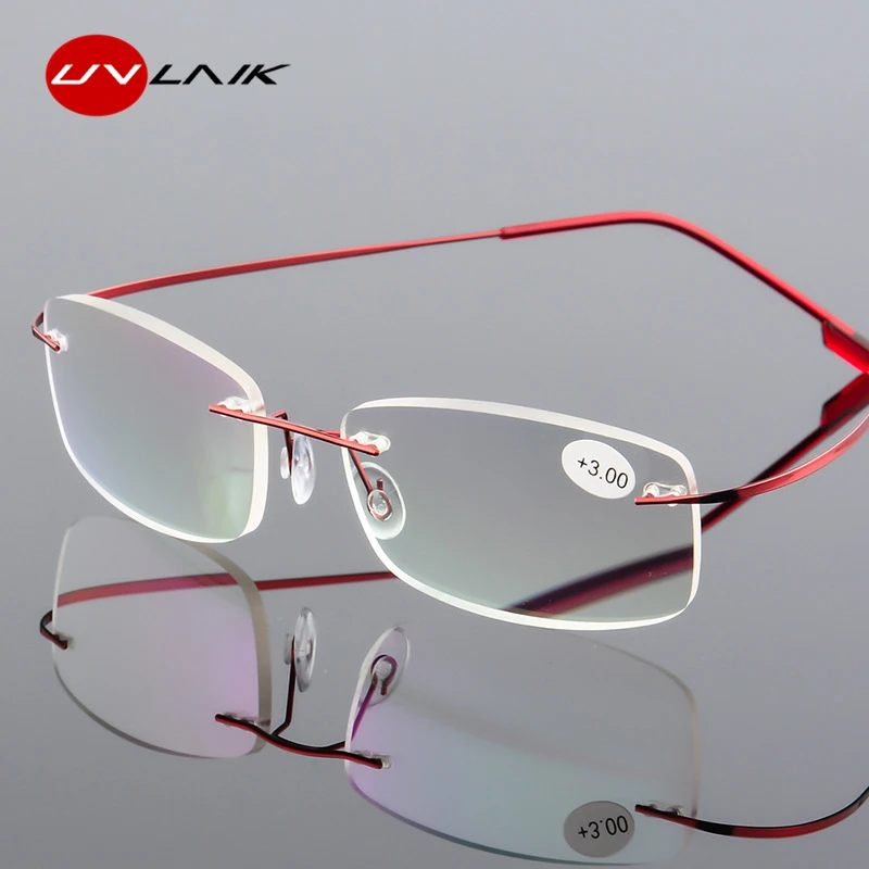Очки UVLAIK для чтения пресбиопические без оправы для мужчин и женщин, эластичные безрамные аксессуары для чтения диоптрий из нержавеющей стали, + 1,5 + 2 + 2,5 + 3