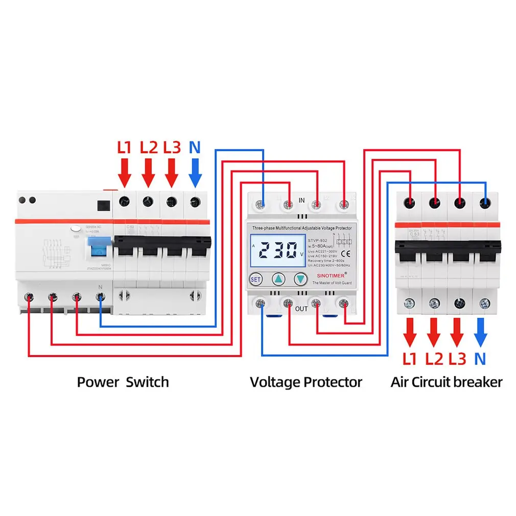 3. STVP серии SINOTIMER бренд автоматическая защита от перенапряжения и пониженного напряжения протекторы подходят для трёхфазного переменного тока 380 В пер. тока, 50/60 Гц.
