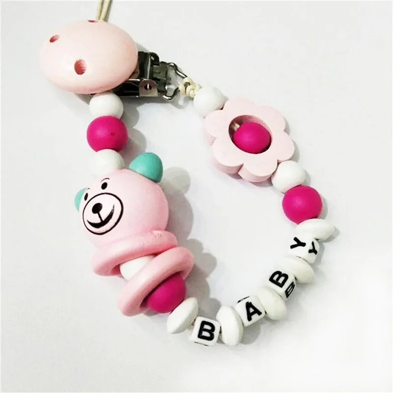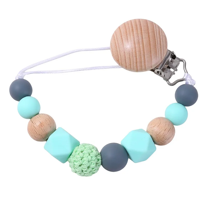 Зажим для детской соски, с силиконовыми бусинами, деревянный, цепочка для прорезывания зубов, зажим для соски для младенцев, зажим для соски, аксессуары для жевания для новорожденных