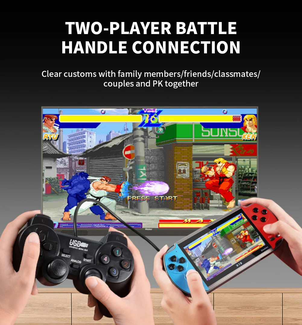 A) режим телевизионной игры: Подключите телевизор через av-кабель, маленький экран становится большим экраном, делитесь счастьем с семьей.