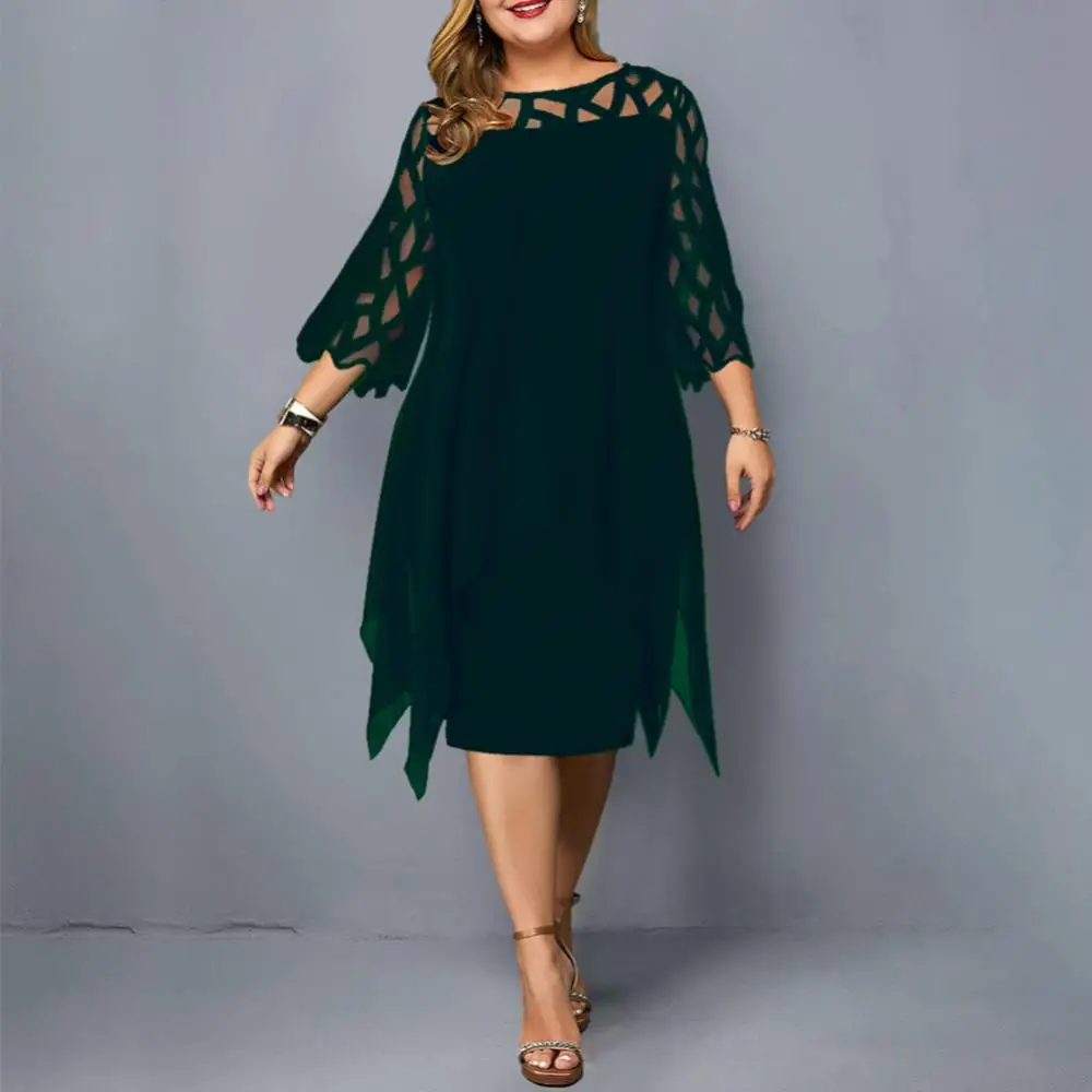 Платье женское прозрачное, до колен, с асимметричным подолом, с рукавом размера плюс, 5XL, 2021