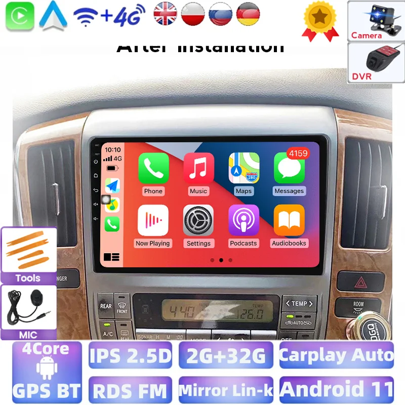 Автомобильный мультимедийный проигрыватель для Toyota Alphard 2002-2011, Android 11, GPS-навигация, RDS, Carplay, SWC, Wi-Fi, с камерой, 2 Din, радио, без DVD