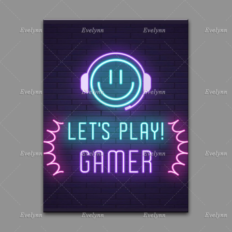 Постеры с неоновыми играми, игровой вентилятор, декоративная картина для комнаты для мальчиков, игровая комната, принты для домашнего декора, настенное искусство, холст, подарок