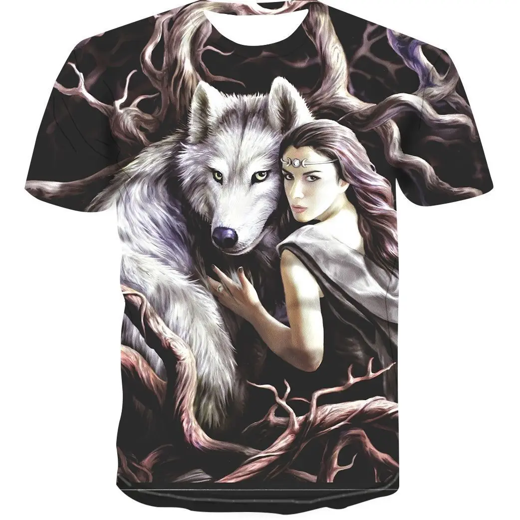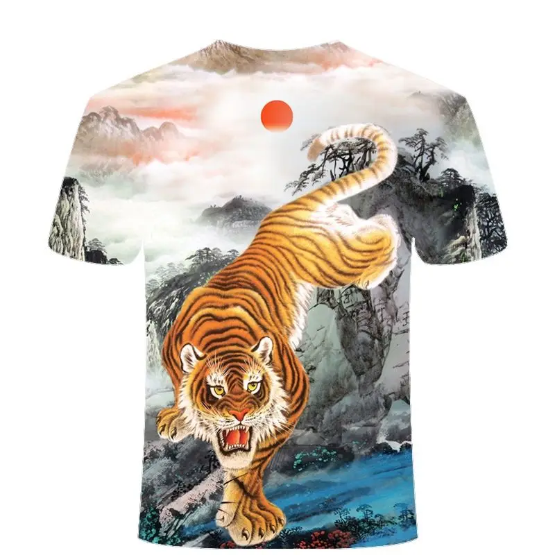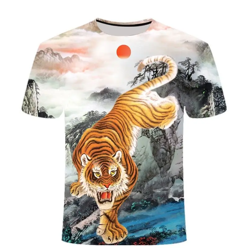 Новая летняя мужская футболка в стиле хип-хоп с 3D-принтом волкатигр