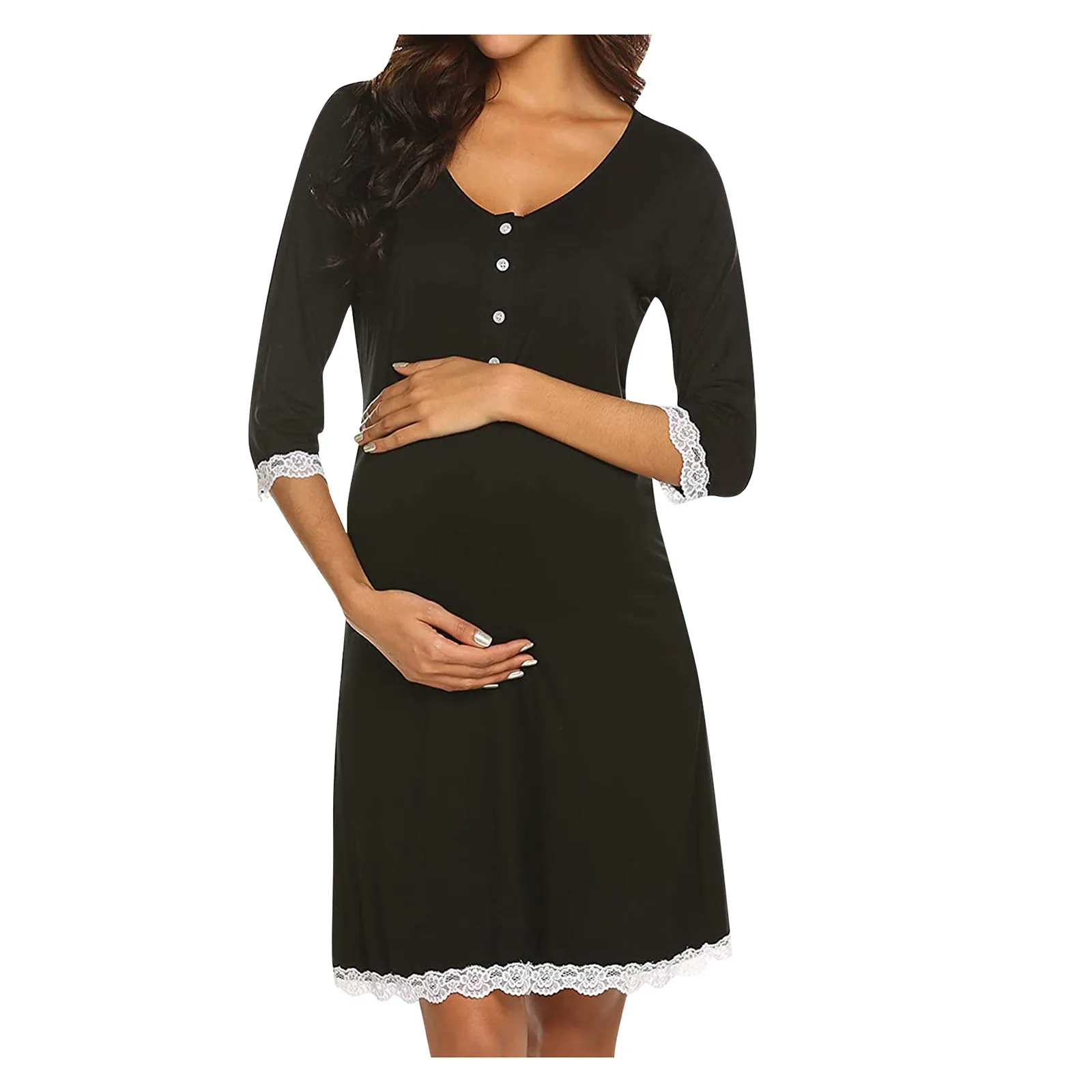 Женское кружевное платье с полурукавами Для Беременных свободная Пижама Для кормящих матерей платье Для Беременных