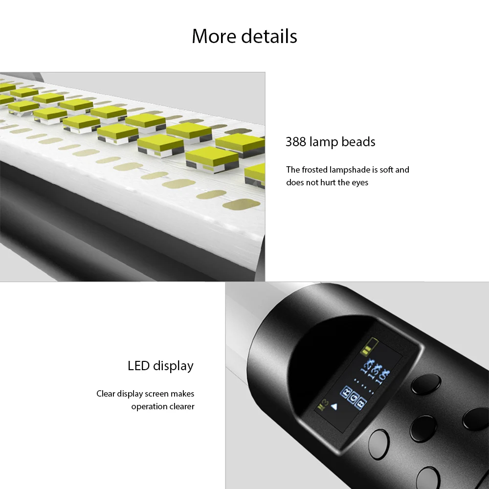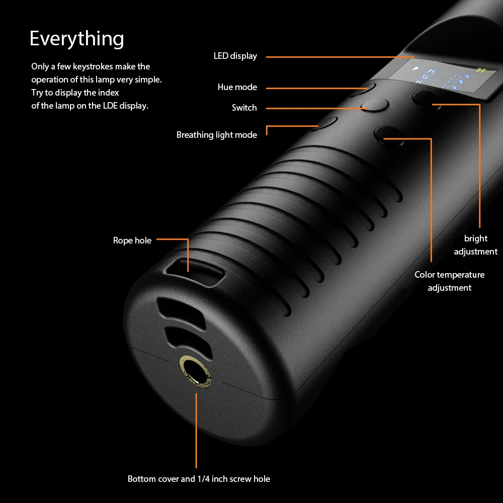 1. Встроенный 5200 мАч аккумулятор полностью долгое время работы от 1,5 до 14 часов. Usb-интерфейс для зарядки позволяет удобно заряжать устройства с usb-портом, таким как внешний аккумулятор, компьютер и т. д.Яркость 2,10 уровня, максимум 1200 люменов, рейтинг cri более 96, позволяет создавать различные специальные эффекты для различных сценариев.3. Светильник размером 50*4 см, идеально подходит для ручного использования. Кроме того, он имеет подвесную петлю, сумку для хранения для удобной переноски, отверстие 1/4 гайки для установки штатива (штатив в комплект не входит).4. Простой в использовании нажмите кнопку обеспечивает простое управление, индикатор Светильник обеспечивает легкую понять состояния батареи; С беспроводной дистанционный пульт, он может быть дистанционно, даже без каких-либо операцию на светильник волшебную палочку.5. Этот надежный светильник может использоваться как лампа для макияжа, фотографический светильник, аварийный светильник, шкаф/кухня/Подвал/Кемпинг/ночной бег/пещерный светильник ing.