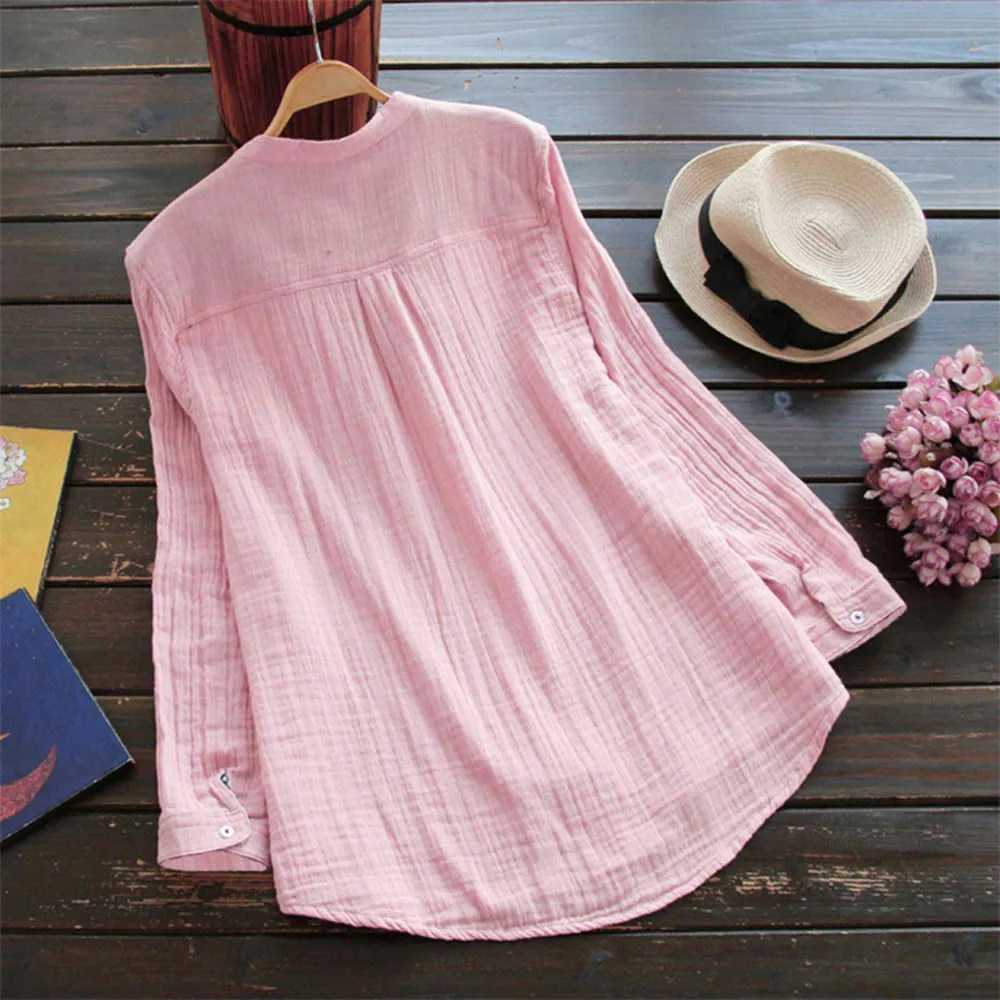 Блузка женская из хлопка и льна, с длинным рукавом, на пуговицах, 2021