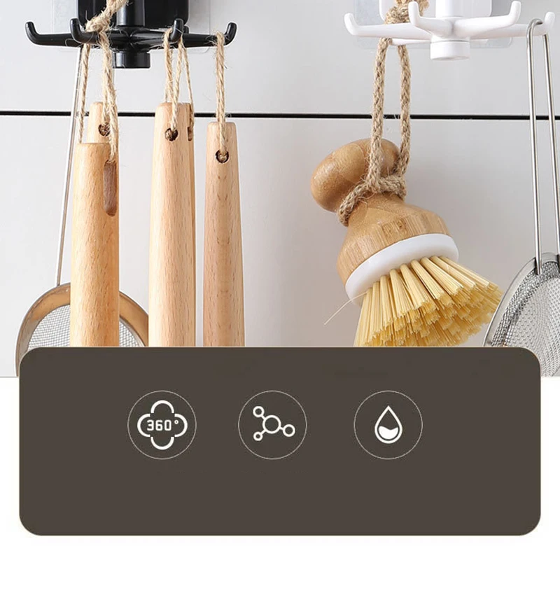 Самоклеящиеся кухонные крючки с вращением на 360 градусов, 6 крючков