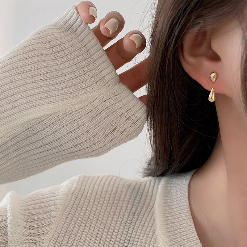 Женские Геометрические серьги-гвоздики, простые металлические серьги в форме капли, ювелирные изделия из металла, 2021
