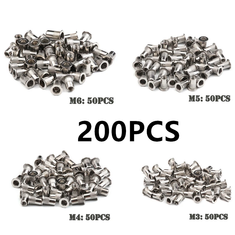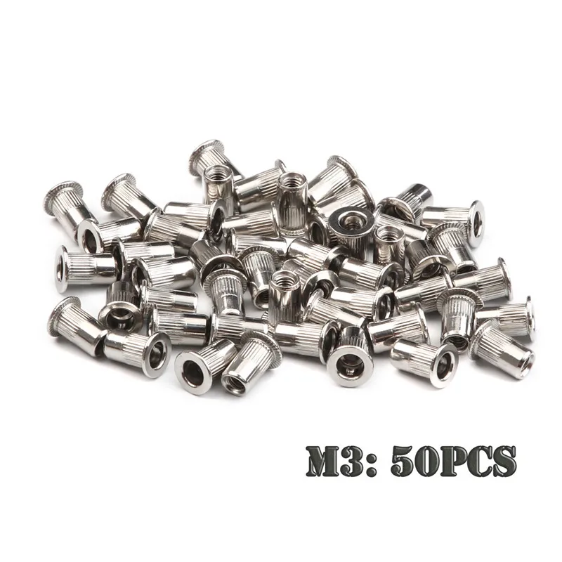 20050 шт. M3 M4 M5 M6 заклепки с плоской головкой из нержавеющей сталиуглеродистой стали, набор вставок, режущие многоразмерные заклепочные гайки